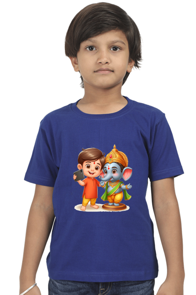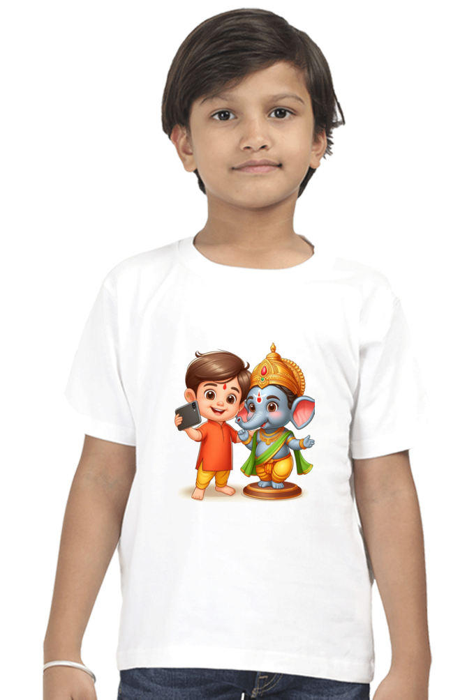 Selfie with Bappa Boys’ T-Shirt – Cute Ganpati Design for Kids | Indian Festive Wear