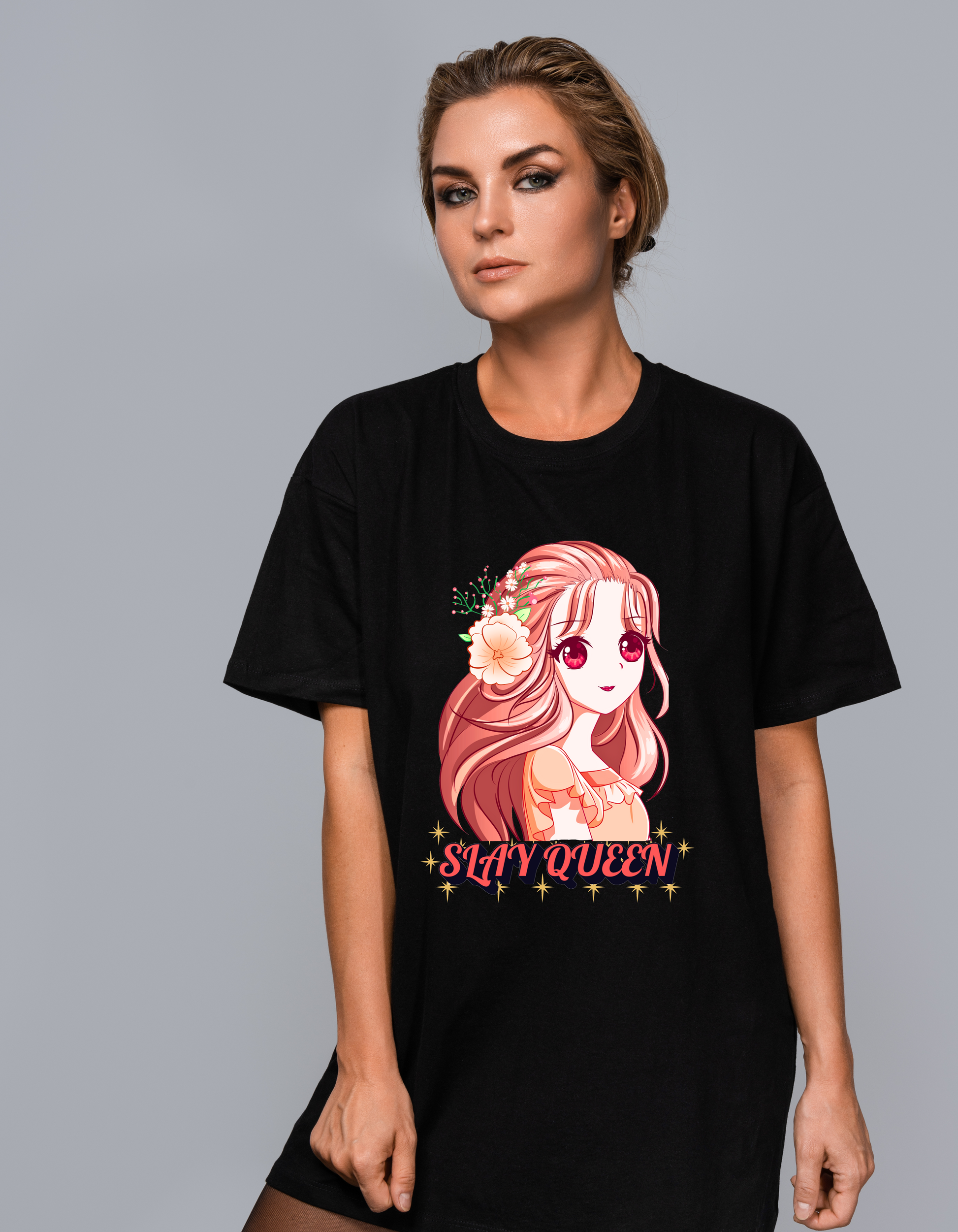 Slay Queen Women's T-Shirt – Floral Anime Girl Graphic Tee for Confident Style